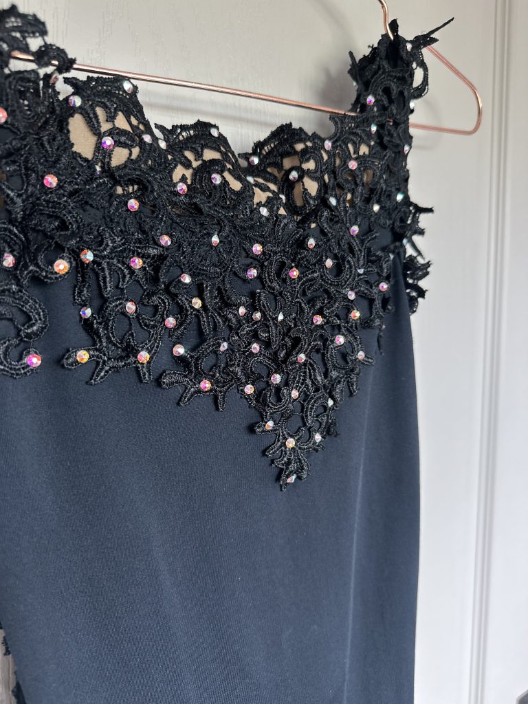 Matières de décorative(s) : Guipure, Strass